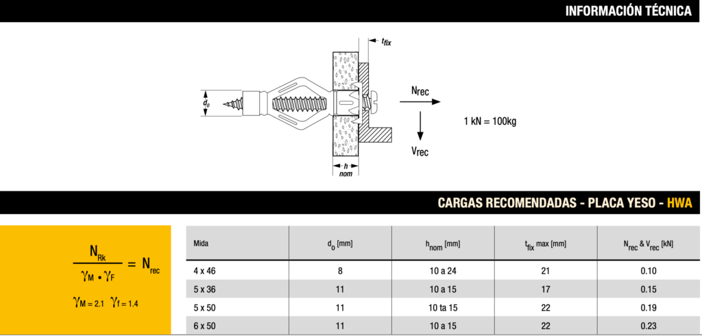 • Anclaje HWA para Materiales Huecos: Diseñado específicamente para su uso en materiales huecos, este taco metálico de expansión es la opción perfecta para un anclaje fuerte y seguro en paredes de placa de yeso o ladrillo.