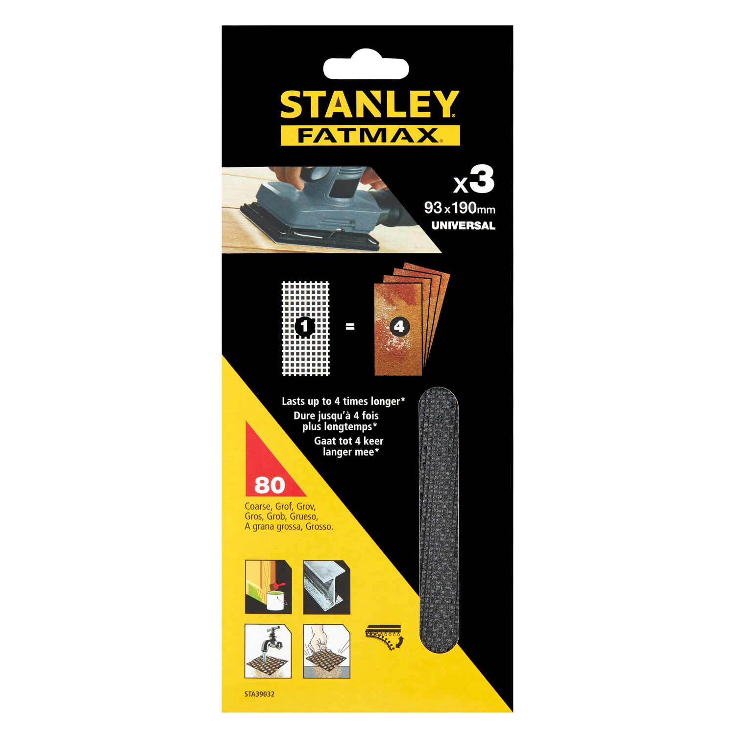 Hojas de lija x3 93x190mm grano 80 para multilijadoras Stanley STA39032-XJ
