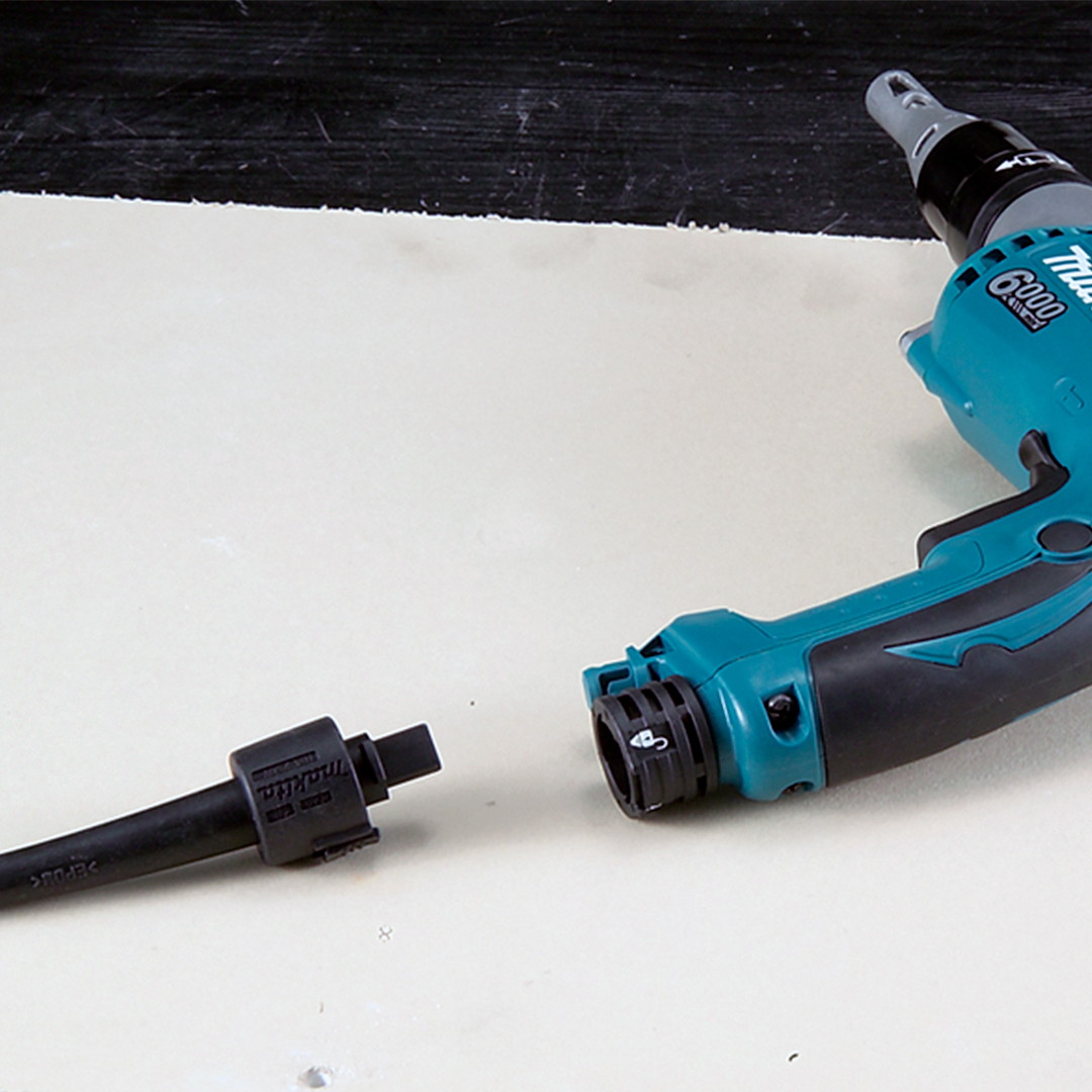 Tope de profundidad de una sola pieza, ajustable a rosca, y fácilmente extraíble para trabajos vistos, con tope de goma en la punta para evitar holguras en el.